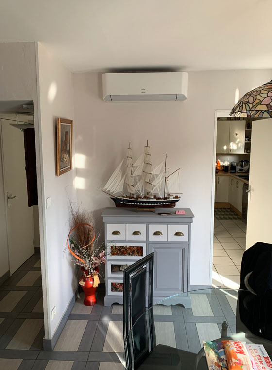 Notre cliente, Mme S., résidant à Meyzieu au sein d’une maison individuelle, souhaitait équiper son séjour et sa chambre d’un climatiseur réversible à l’approche de l’hiver.