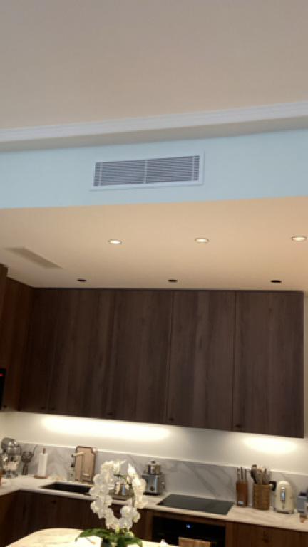 La visite technique permet d’évaluer les exigences du chantier : assurer une température agréable toute l’année dans les deux chambres, le salon, la salle à manger et la cuisine. Compte tenu des attentes de M. E., nous lui proposons un système de climatisation gainable Fujitsu Atlantic dotée de la technologie Inverter.